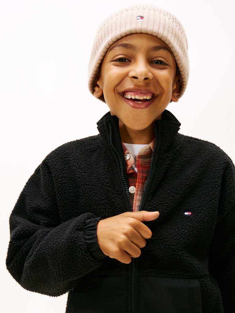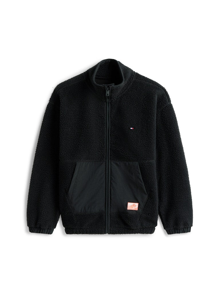 TOMMY HILFIGER BOYS FABRIC MIX FLEECE ZIP THRU - BLACK