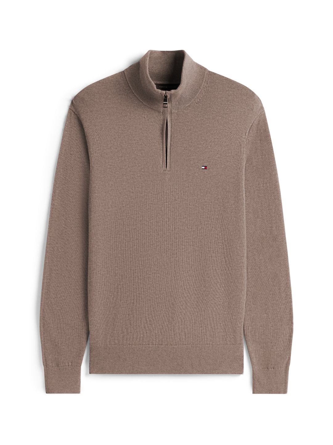 TOMMY HILFIGER PIMA ORG CTN CASHMERE ZIP MOCK - COASTAL TAUPE