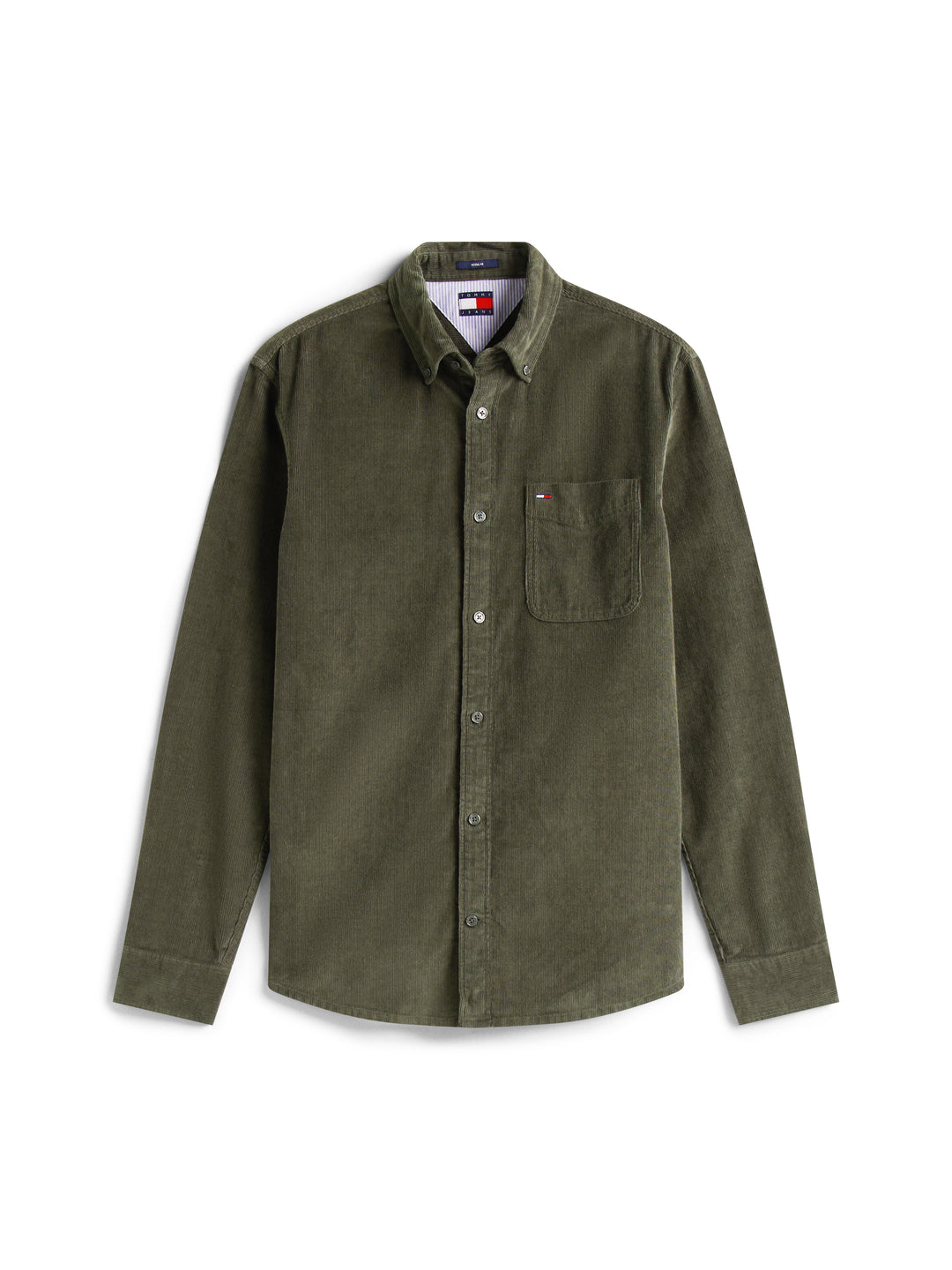 TOMMY JEANS REG BABY CORD SHIRT - PEWTER GREEN