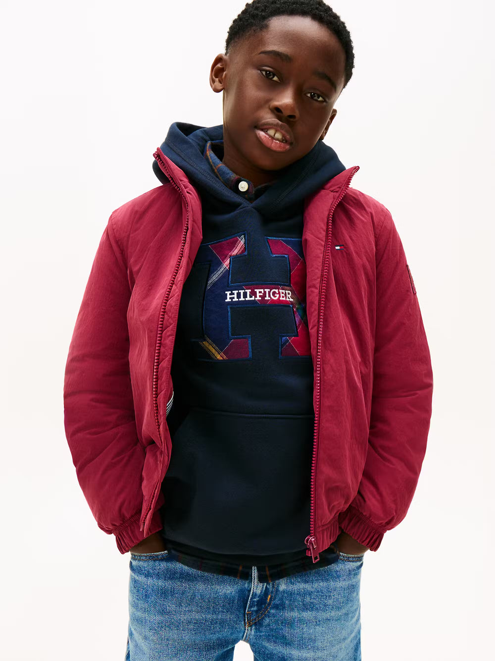 TOMMY HILFIGER BOYS ESSENTIAL PADDED JACKET - CHERRY