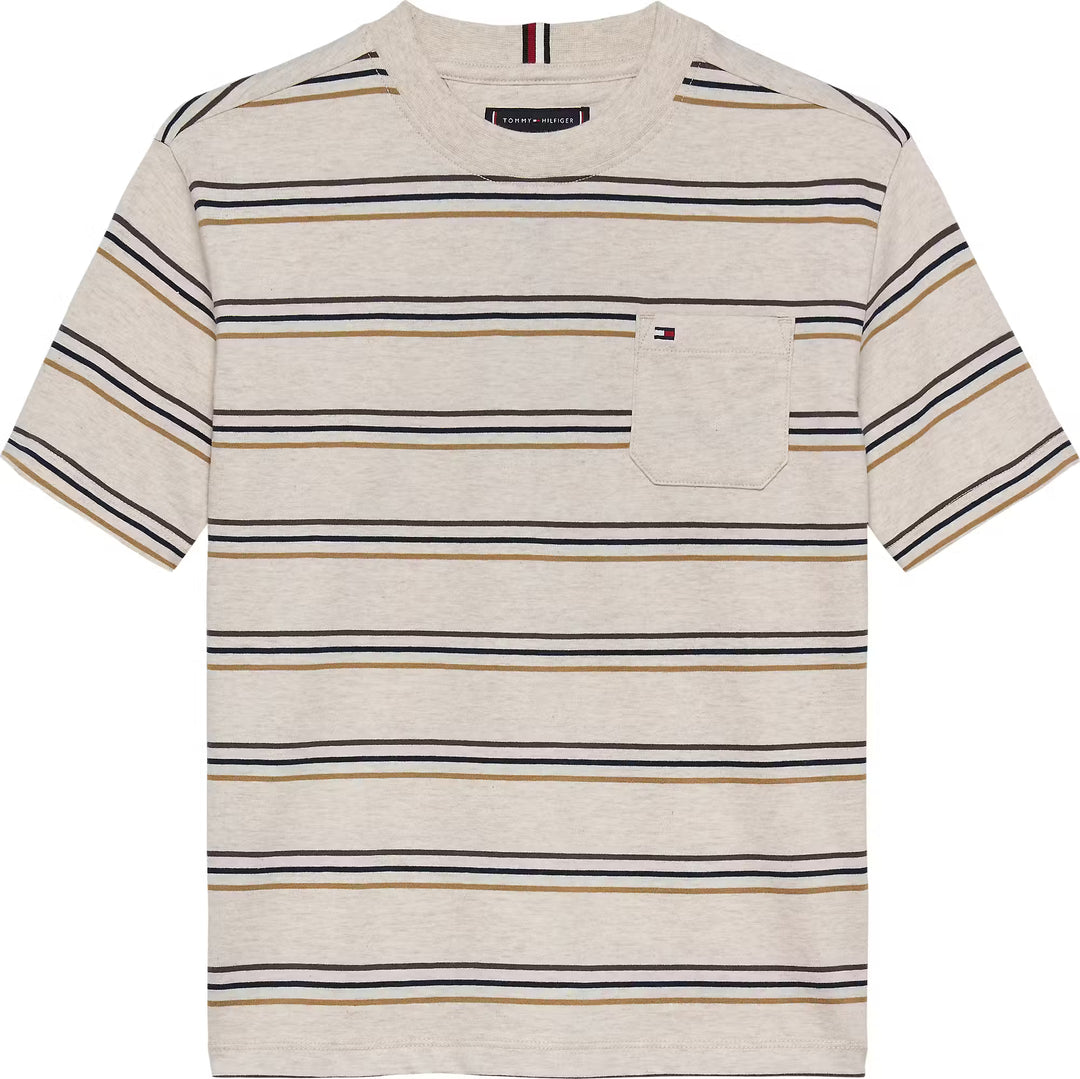 TOMMY HILFIGER BOYS HEATHER STRIPE TEE - GULF SAND
