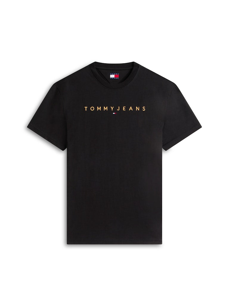TOMMY JEANS REG LINEAR LOGO TEE - BLACK/SUN KISS