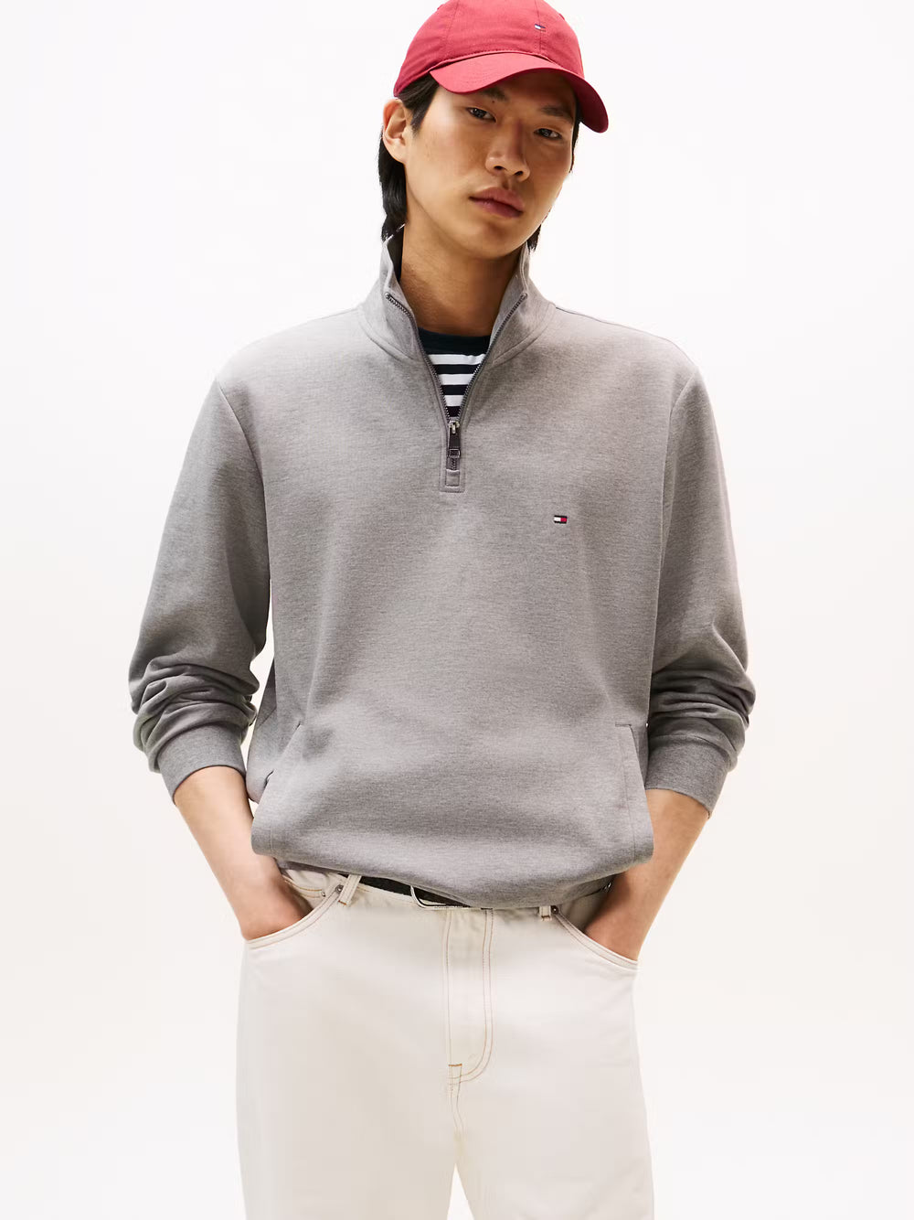 TH ESSENTIAL INTECHNO 1/4 ZIP - MEDIUM GREY