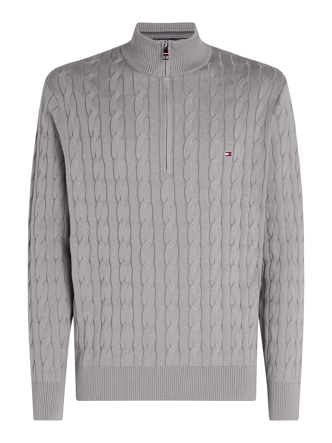 TH CLASSIC COTTON CABLE ZIP MOCK - GREY