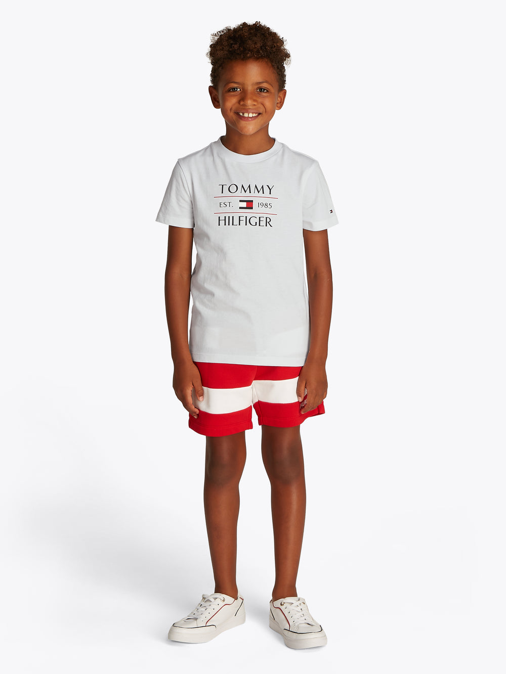 Tommy Hilfiger Kids Tommy Flag Hilfiger Reg Tee – A classic everyday essential crafted from 100% regenerative cotton for a softer, more sustainable feel. Featuring the iconic Tommy Hilfiger flag logo on the chest, this regular-fit tee combines comfort and timeless style for little trendsetters.