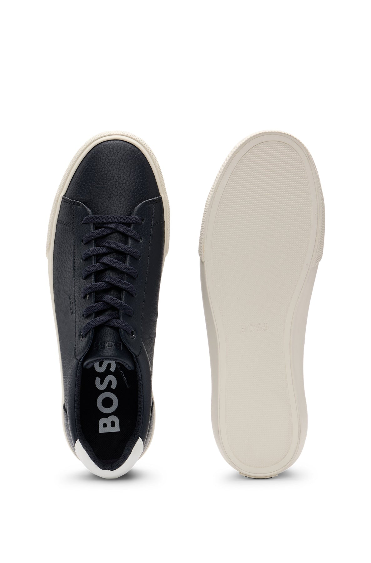 With branding and a contrast trim adding interest, these BOSS Menswear trainers are ideal for any outfit. Synthetic coated fabric uppers with grained texture. Synthetic coated fabric, sometimes referred to as faux leather, is a fabric designed to resemble real leather, and/or display a matte, glossy, smooth, or textured, coated appearance.