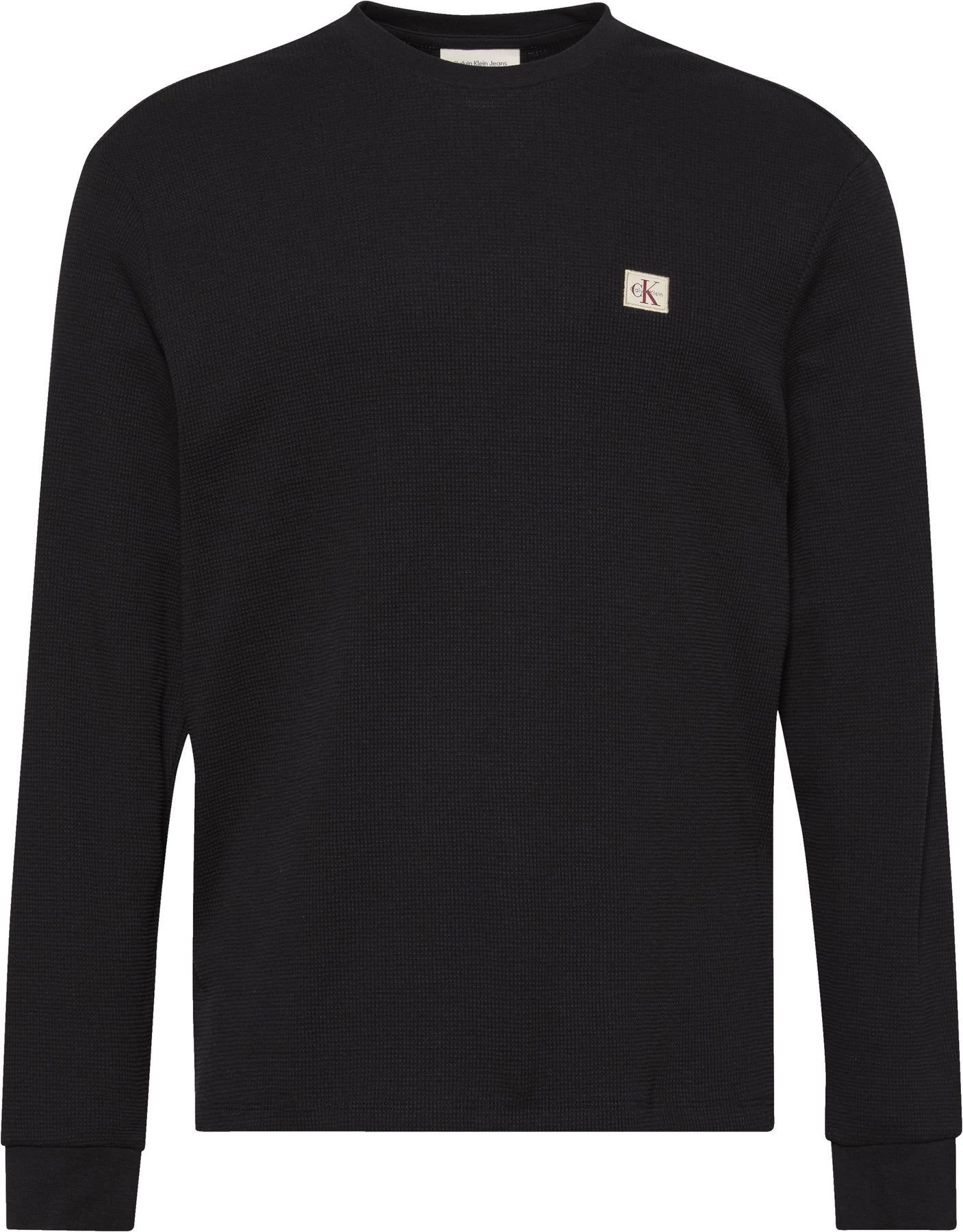 CKJ LS WAFFLE BADGE CREW - BLACK
