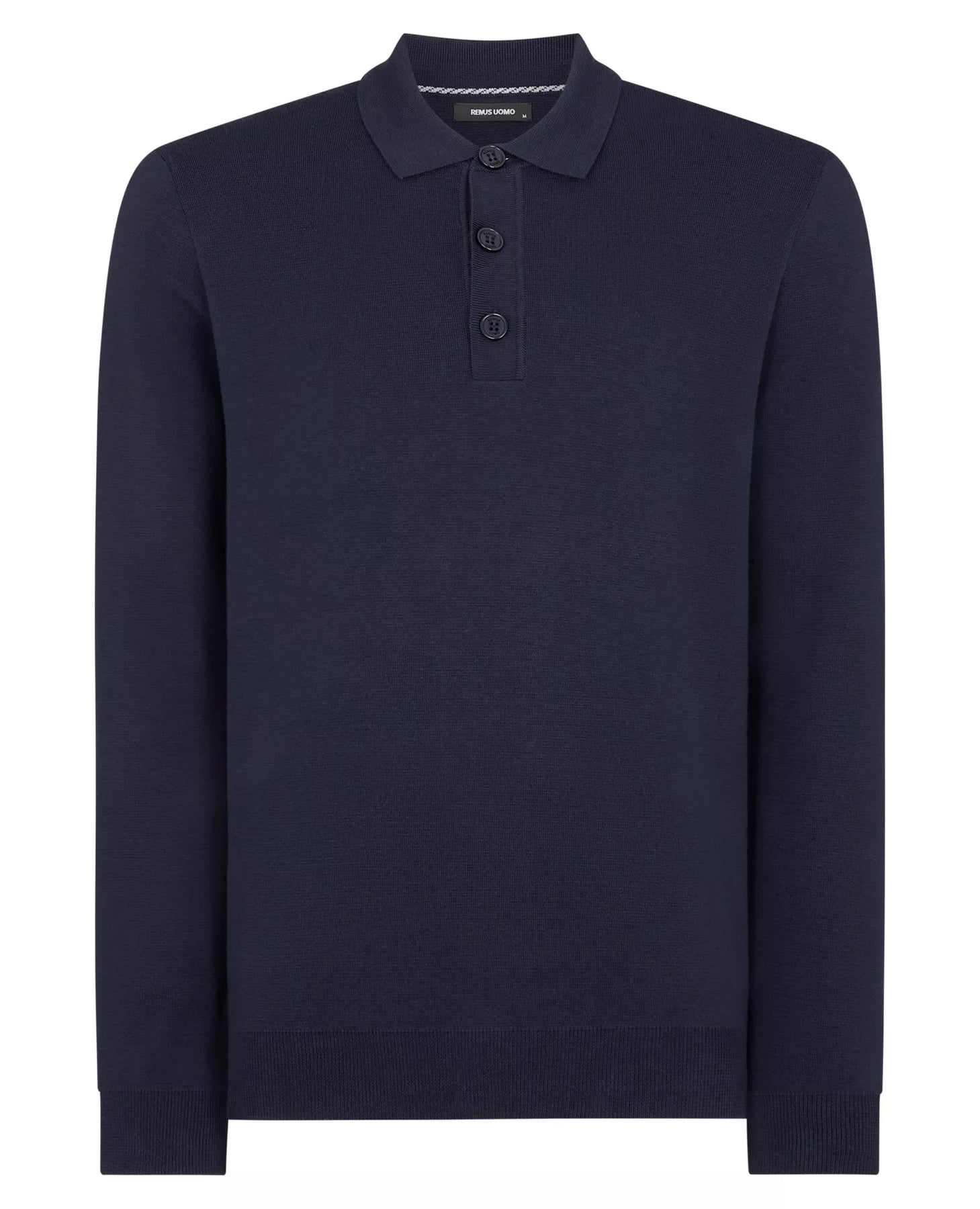 Remus Uomo Regular Fit Knitted Polo A refined long-sleeve polo crafted from 100% cotton in an all-over half Milano knit structure. Finished with a 3-button placket and designed in a regular fit for versatile, everyday wear.