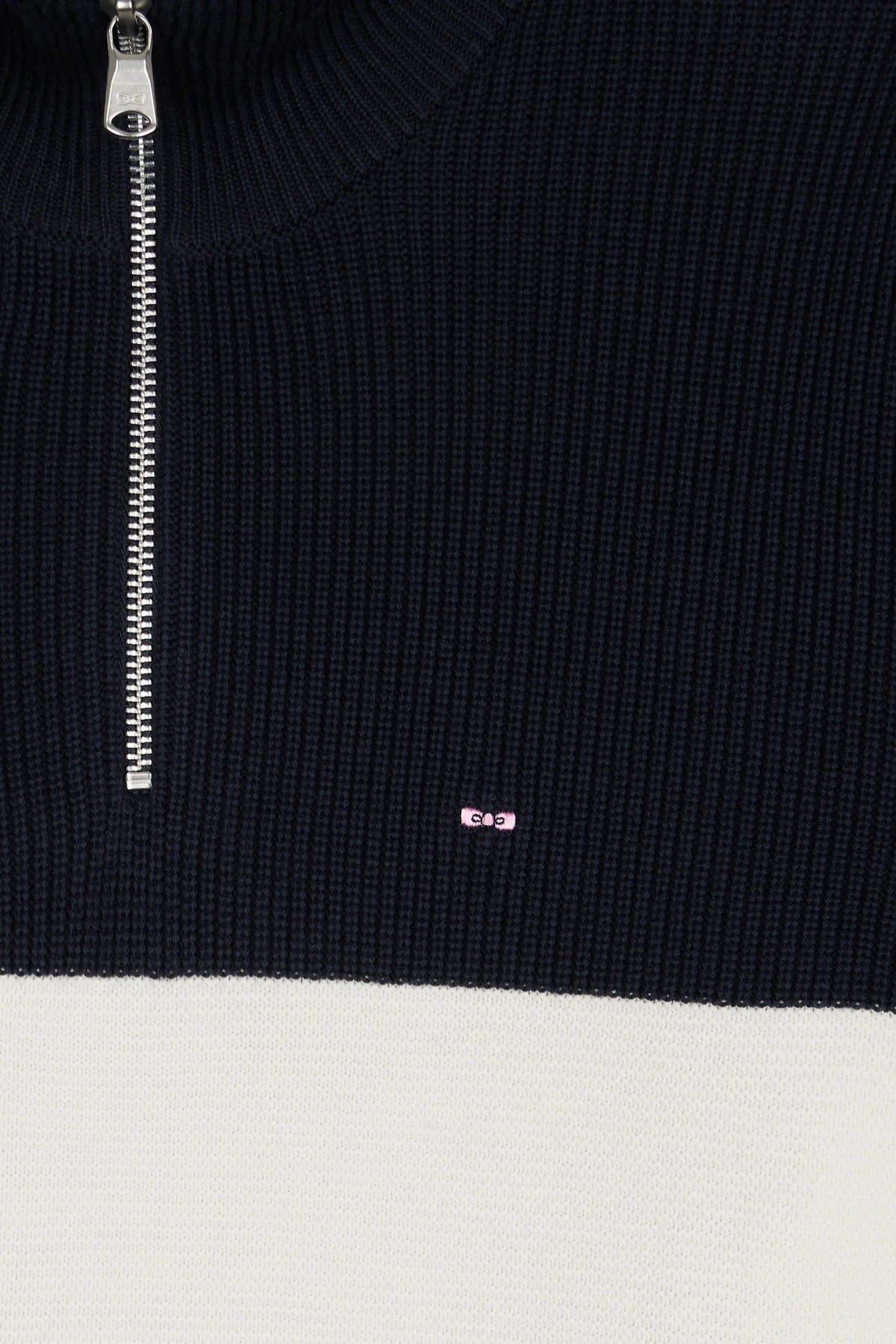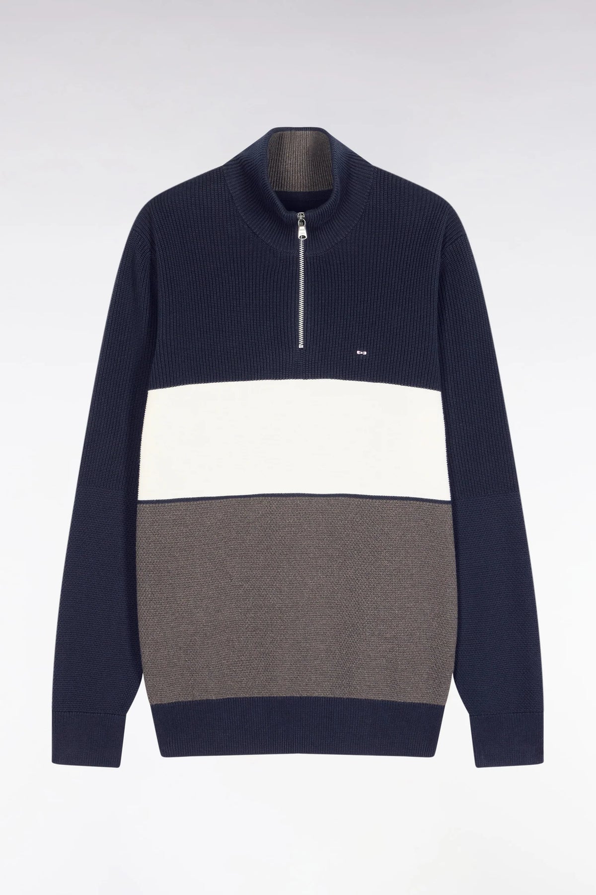 EDEN PARK HEAVY STRIPED 1/2 ZIP - NAVY/BROWN